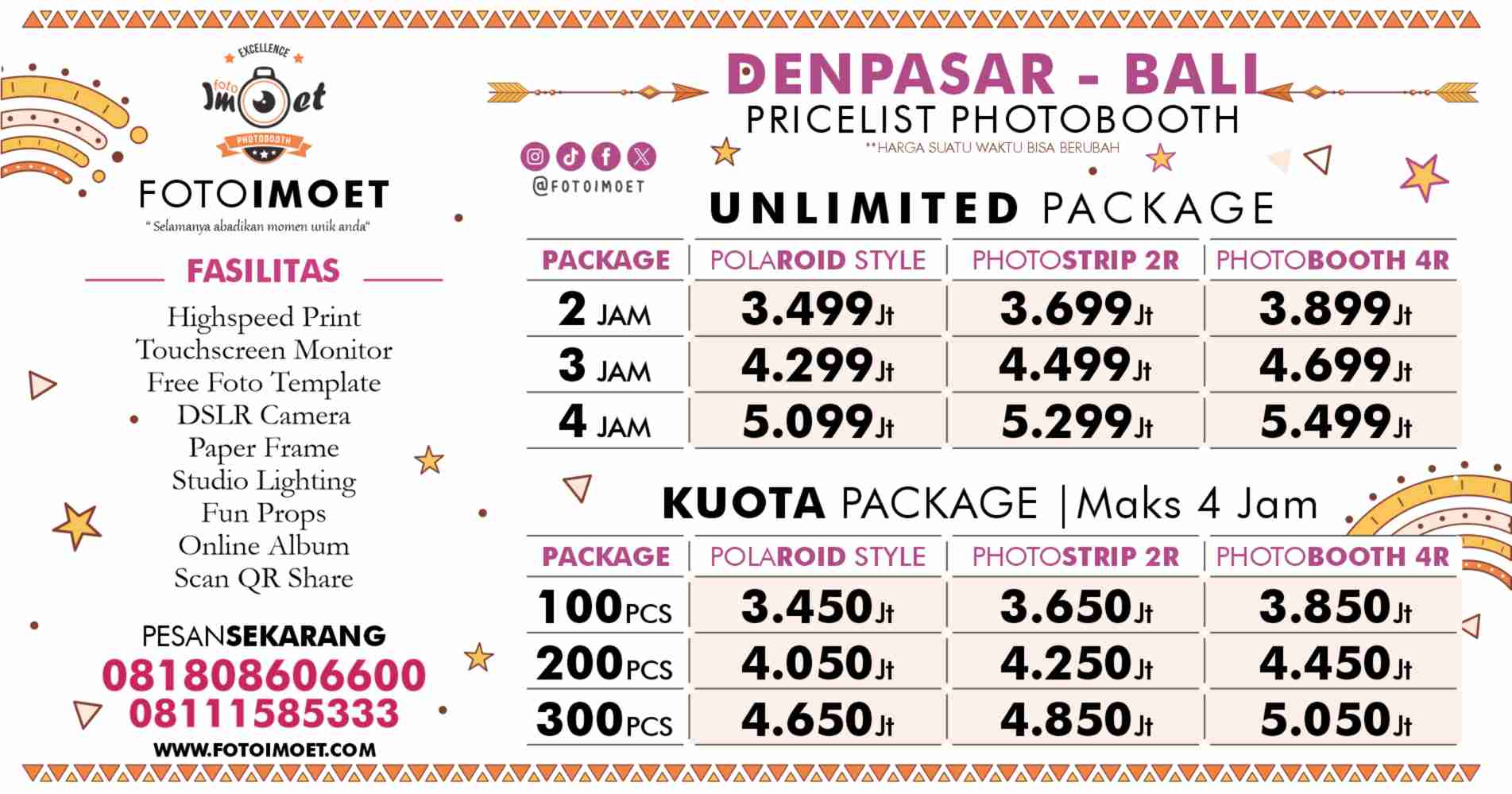 - Paket Bali Photobooth Unlimited: Buat kamu yang nggak bisa berhenti gaya di depan kamera! Foto sepuasnya sesuai waktu yang kamu pilih.