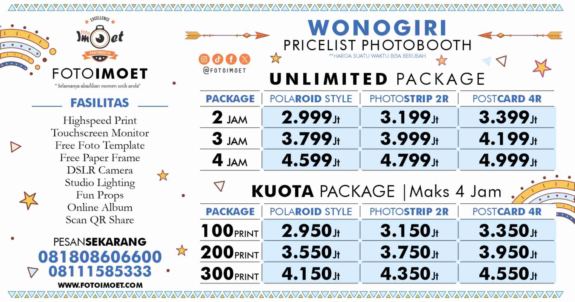 Fotoimoet Wonogiri juga melayani paket photo booth yang lain, cocok buat event kantor atau event apapun yang membutuhkan photo booth souvenir foto instan murah.